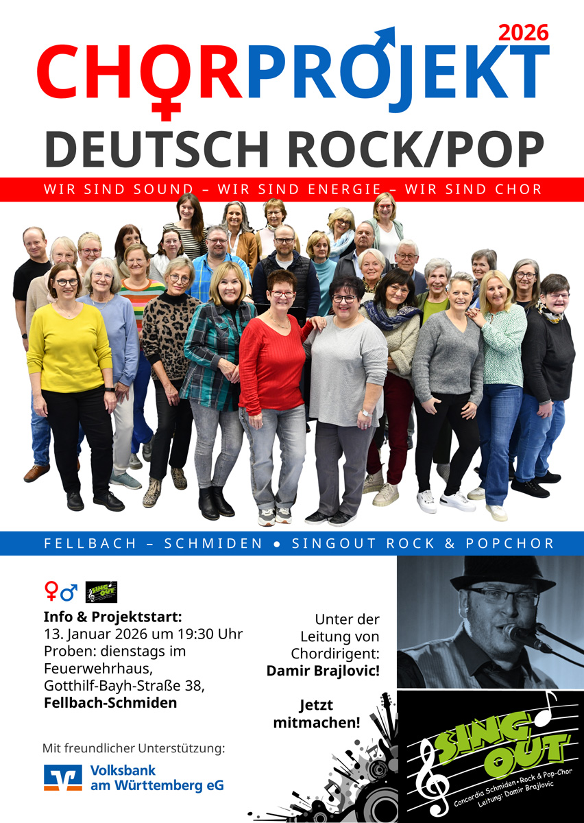 Bringe legendäre Hits wie „Tage wie diese“, „Westerland“, „Engel“ und „Amadeus“ zum Strahlen. Tauche ein in mehrstimmigen Wahnsinn, pure Freude und eine tolle Gemeinschaft. Unter der Leitung von Dirigent Damir Brajlovic entdeckst du deine Stimme neu, erlebst Bewegung, Gefühl und die unvergessliche Chance, das Publikum zu begeistern.