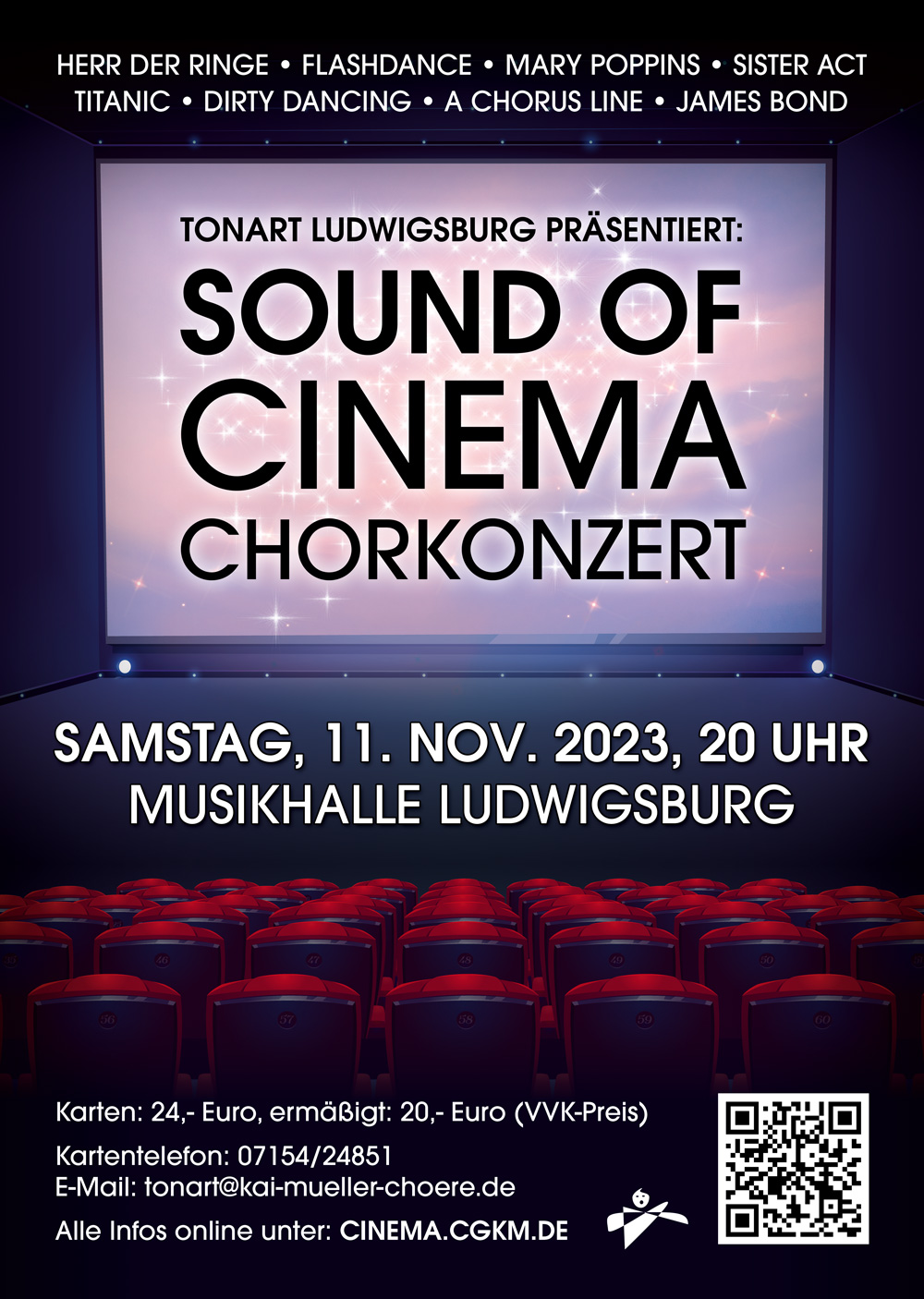 Tauchen Sie ein in die faszinierende Welt des Kinos und lassen Sie sich von den mitreißenden Melodien berühmter Filmmusik verzaubern! Das Chorkonzert "Sound of Cinema" entführt Sie auf eine musikalische Reise durch die letzten Jahrzehnte der Filmgeschichte. Erleben Sie unvergessliche Lieder aus bekannten Kinofilmen, die Ihnen das Gefühl geben, Teil der magischen Leinwand zu sein. Von epischen Abenteuern bis hin zu bewegenden Liebesgeschichten - der Chor entfaltet die kraftvolle Atmosphäre und die unverkennbaren Melodien, die unsere Lieblingsfilme unvergesslich machen. Ein Konzerterlebnis, das Filmfans und Musikliebhaber gleichermaßen begeistern wird!